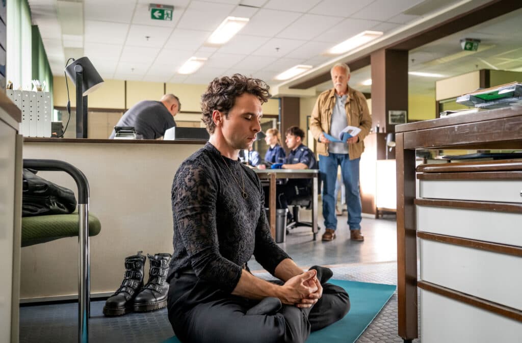 ARD/rbb POLIZEIRUF 110: GOLDRAUB, Fernsehfilm Deutschland 2026, am Sonntag (29.03.26) um 20:15 Uhr im ERSTEN. Kriminalkommissar Vincent Ross (André Kaczmarczyk, li.) und sein Kollege Kriminalkommissar Karl Rogov (Frank Leo Schröder, re.) vom Deutsch-Polnischen Kommissariat in Swiecko kommen mit ihren Ermittlungen im Fall einer Raubserie auf Juweliergeschäfte in der Grenzregion nicht weiter. © rbb/Christoph Assmann, honorarfrei - Verwendung gemäß der AGB im engen inhaltlichen, redaktionellen Zusammenhang mit genannter rbb-Sendung bei Nennung "Bild: rbb/Christoph Assmann" (S2+). rbb Presse & Information, Masurenallee 8-14, 14057 Berlin, Tel: 030/97 99 3-12118 oder -12116, pressefoto@rbb-online.de