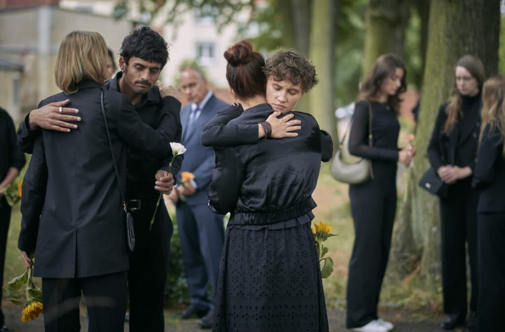 ARD/MDR POLIZEIRUF 110: YOUR BODY MY CHOICE, am Sonntag (08.03.26) um 20:20 Uhr im ERSTEN. Toni (Ruben Sabel) und Lara Becker (Luna Jordan) bei der Beerdigung von Marwa. © MDR/Felix Abraham, honorarfrei - Verwendung gemäß der AGB im engen inhaltlichen, redaktionellen Zusammenhang mit genannter MDR-Sendung bei Nennung "Bild: MDR/Felix Abraham" (S2+). MDR/HA Kommunikation, 04360 Leipzig, Tel: (0341) 300 6477 oder - 6463