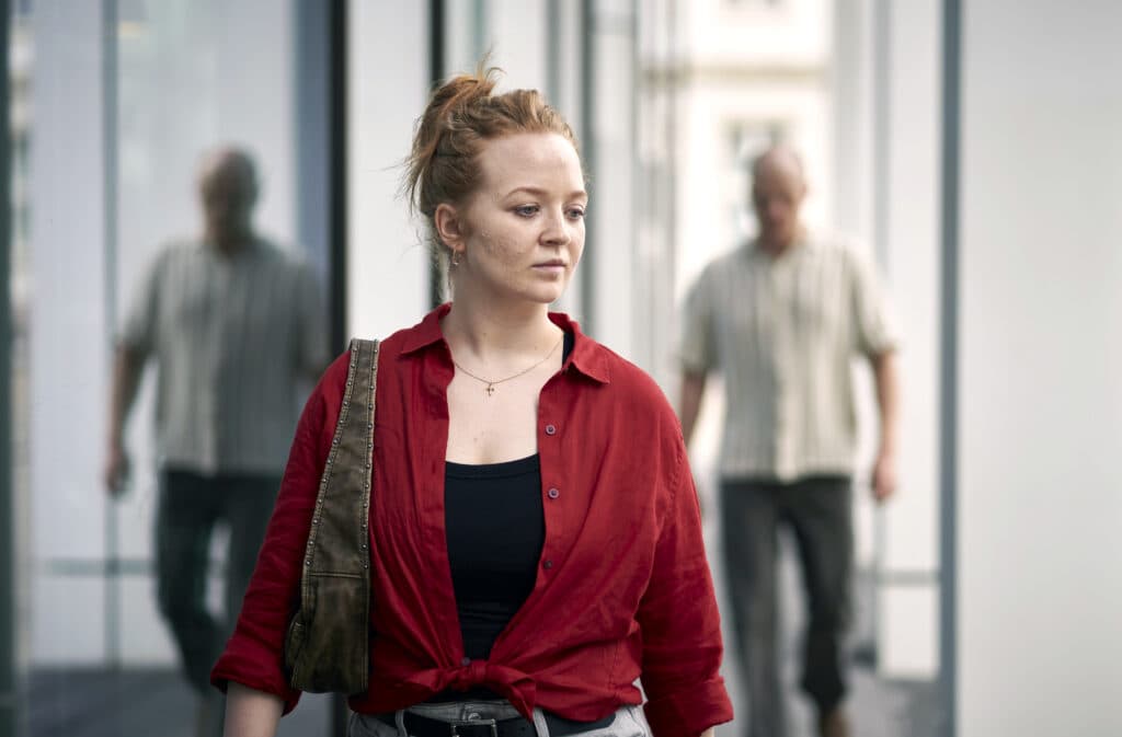 Dania (Nicola Magdalena Lüders) wird von Maik Gerboth (Sebastian Jakob Doppelbauer) in der Magdeburger Innenstadt verfolgt.