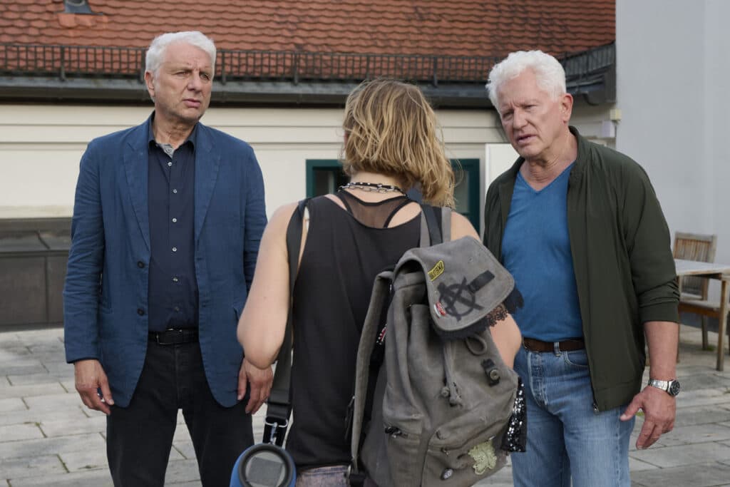 BR/Claussen+Putz Filmproduktion GmbH/Johann Feindt Nach dem Tanzen wird Ria Jäger (Liliane Amuat, Mitte) von Kriminalhauptkommissar Leitmayr (Udo Wachtveitl, links) und Kriminalhauptkommissar Ivo Batic (Miroslav Nemec) befragt.