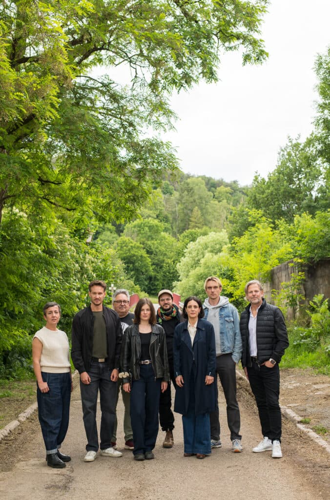 Von links nach rechts: Alexandra Fritsch (Redakteurin SR), Vladimir Burlakov (als "Leo Hölzer"), Christian Bauer (Redakteur SR), Luzie Loose (Regisseurin), Jan Mayntz (Kameramann), Brigitte Urhausen (als "Esther Baumann"), Daniel Sträßer (als "Adam Schürk"), Jan Kruse (Produzent Bavaria Fiction)