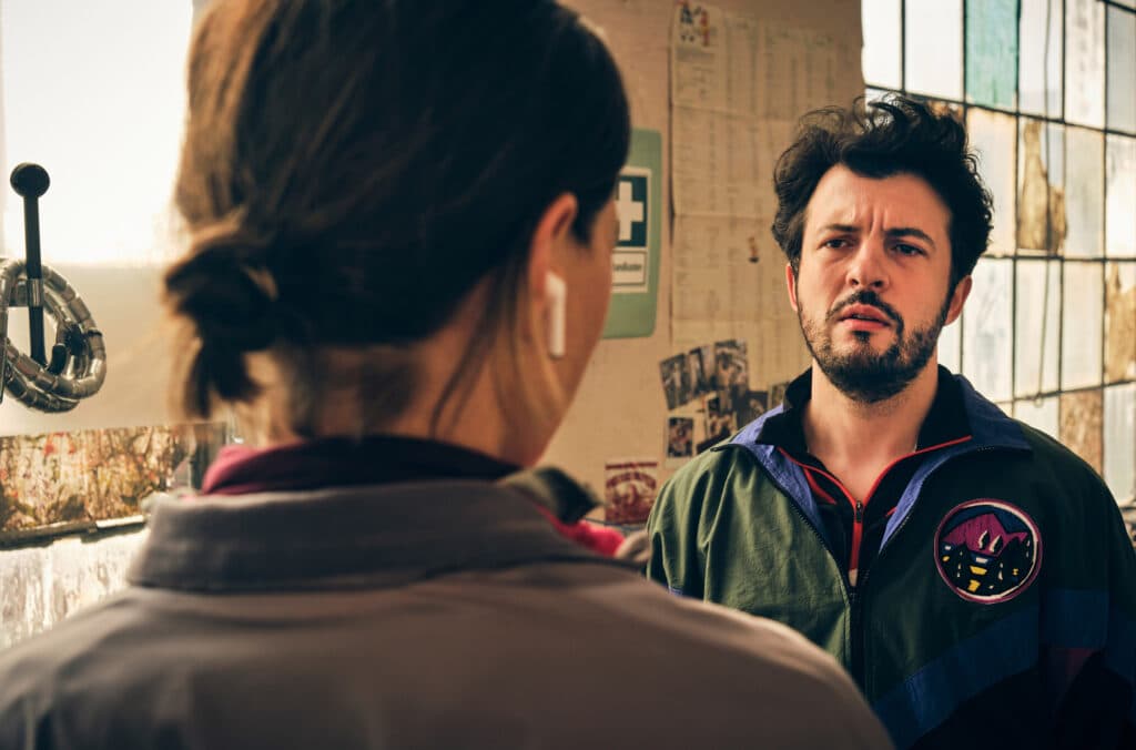 ARD/SWR TATORT: SASHIMI SPEZIAL, Fernsehfilm Deutschland 2026, am Sonntag (01.03.26) um 20:15 Uhr im ERSTEN. Theo (Camill Jammal) wird misstrauisch, als er die neue Mitarbeiterin „Jo“ (Lisa Bitter) in der Zentrale am Computer erwischt. © SWR/Benoît Linder, honorarfrei - Verwendung gemäß der AGB im engen inhaltlichen, redaktionellen Zusammenhang mit genannter SWR-Sendung und bei Nennung "Bild: SWR/Benoît Linder" (S2+). SWR Presse/Bildkommunikation, Baden-Baden, Tel: 07221/929-22202, foto@swr.de