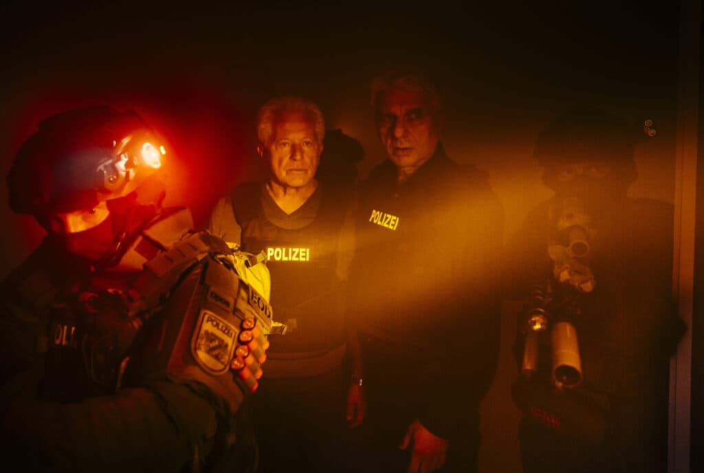 Von links: Kriminalhauptkommissar Ivo Batic (Miroslav Nemec) und Kriminalhauptkommissar Franz Leitmayr (Udo Wachtveitl) betreten mit den SEK Beamten Karas Wohnung.
