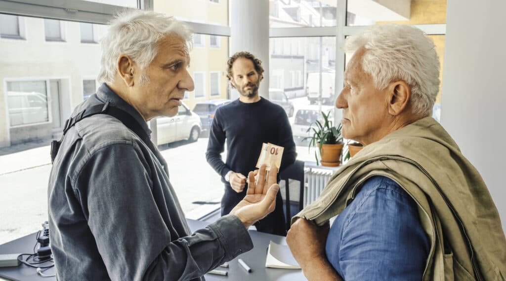 Von links: Kriminalhauptkommissar Franz Leitmayr (Udo Wachtveitl), Stutzki (Maxi Schafroth) und Kriminalhauptkommissar Ivo Batic (Miroslav Nemec). Franz und Ivo wollen, dass Stutzki einen Personalausweis checkt.