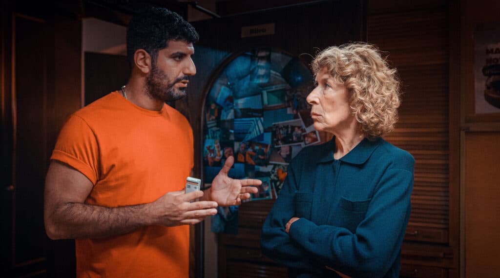 Im Bild: Emre Cakir (Rolle: Araz Barzani, li.), Adele Neuhauser (Rolle: Bibi Fellner).