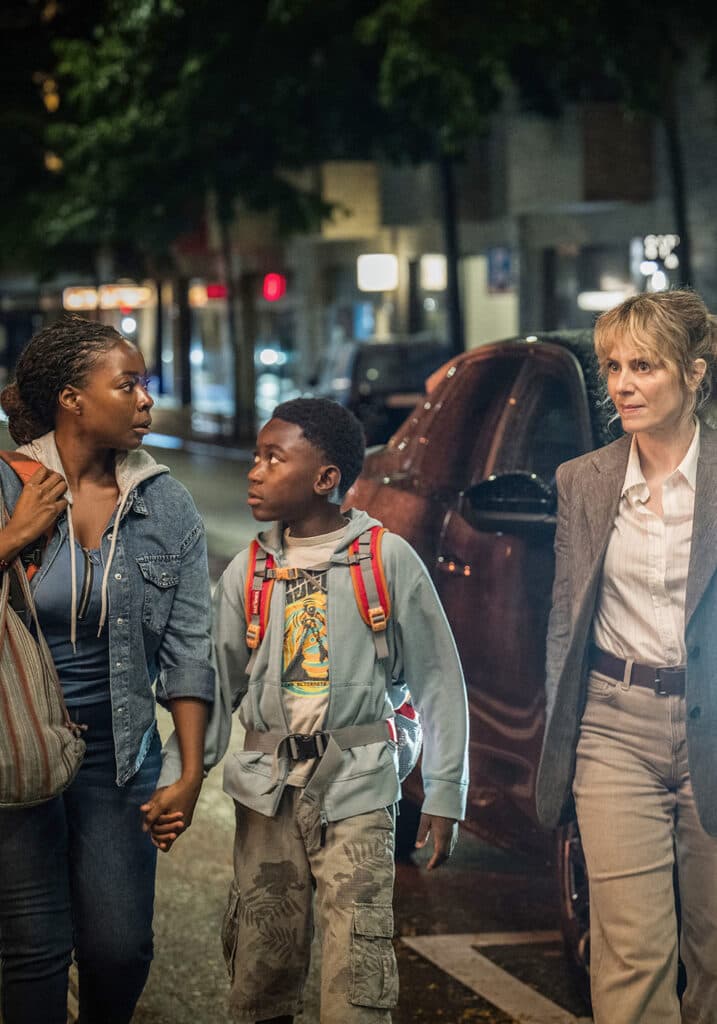 Ein sicherer Verbleib tut Not: Moya Alemu (Nambitha Ben-Mazwi, r.), Yaro Alemu (André Nkot Olinga, M.) und Kommissarin Isabelle Grandjean (Anna Pieri Zuercher, r.)