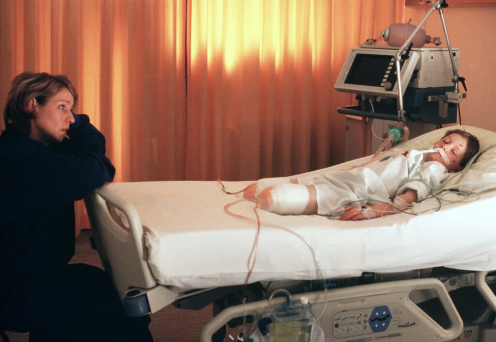 WDR Fernsehen TATORT, "Minenspiel", Fernsehfilm Deutschland 2004, Buch Karl-Heinz Käfer, Regie Torsten C. Fischer, Produktion der Colonia Media im Auftrag des WDR, am Dienstag (02.12.25) um 22:15 Uhr. Schon wieder ein Landminen-Opfer mitten in Köln: Der kleine Phillip hat bei dem Attentat seine Beine verloren. Seine Mutter Hella Schauff (Kirsten Bock) wacht am Krankenbett. © WDR/Uwe Stratmann, honorarfrei - Verwendung gemäß der AGB im engen inhaltlichen, redaktionellen Zusammenhang mit genannter WDR-Sendung bei Nennung "Bild: WDR/Uwe Stratmann" (S2). WDR Kommunikation/Redaktion Bild, Köln, Tel: 0221/220 -7132 oder -7133, Fax: -777132, bildkommunikation@wdr.de